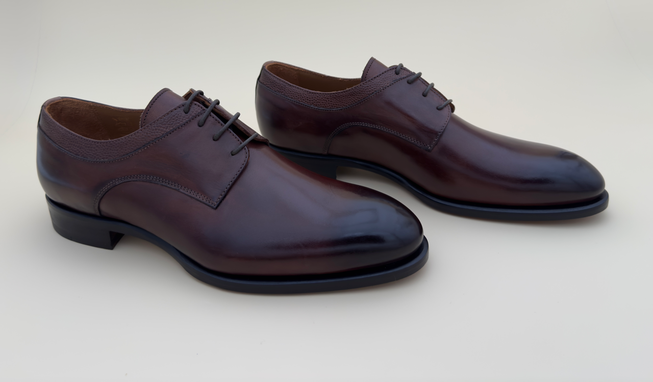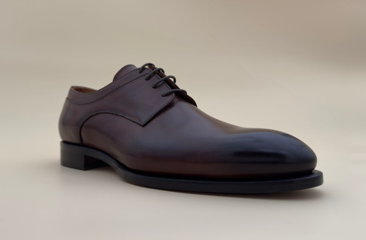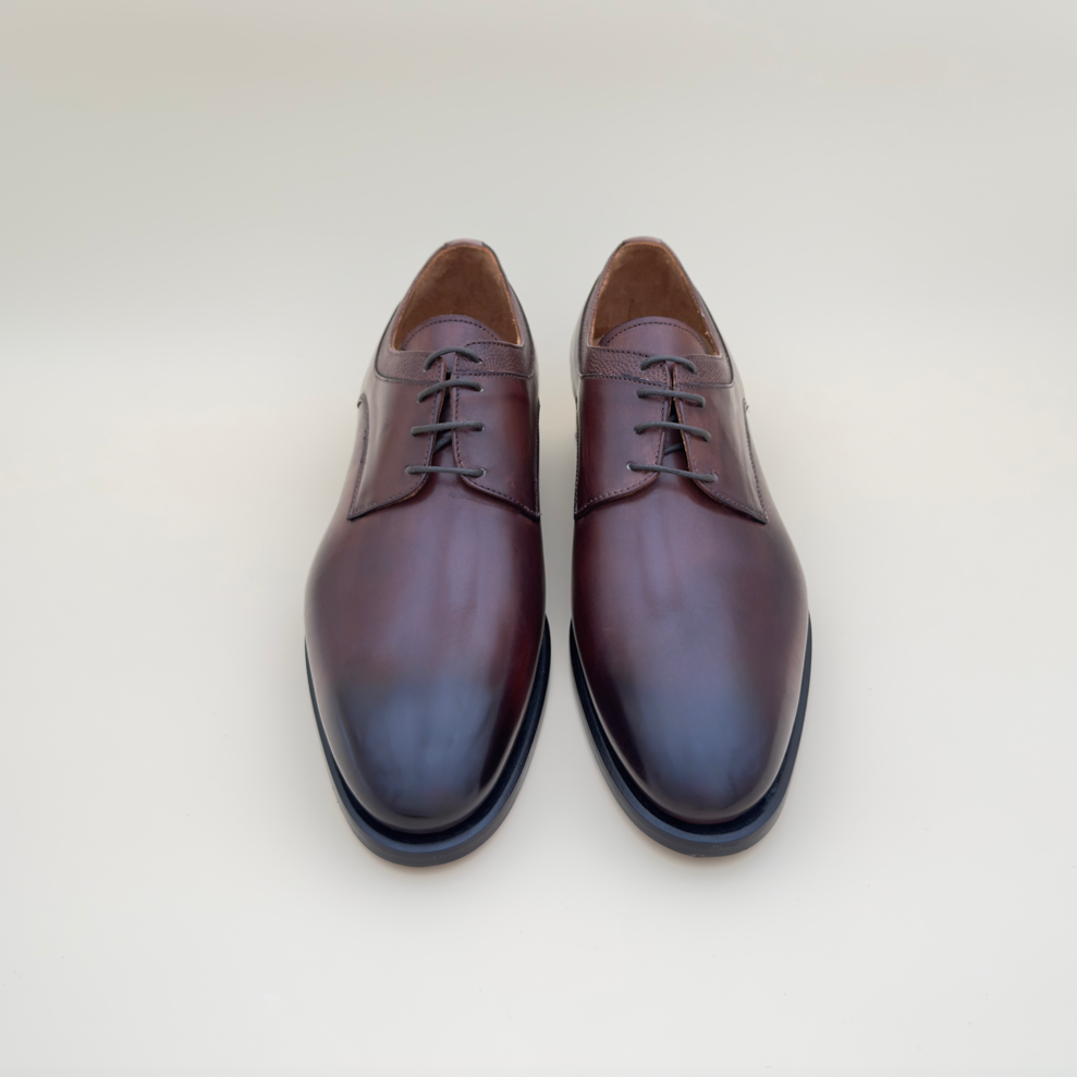 Derby en cuir de mouton brun patiné